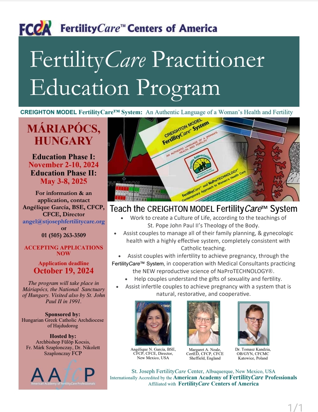 Applications being accepted for the FertilityCare Practitioner Education program starting this November in Hungary.